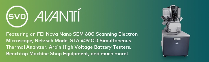 Featuring an FEI Nova Nano SEM 600 Scanning Electron Microscope, Netzsch Model STA 409 CD Simultaneous Thermal Analyzer, Arbin High Voltage Battery Testers, Benchtop Machine Shop Equipment, and much more!