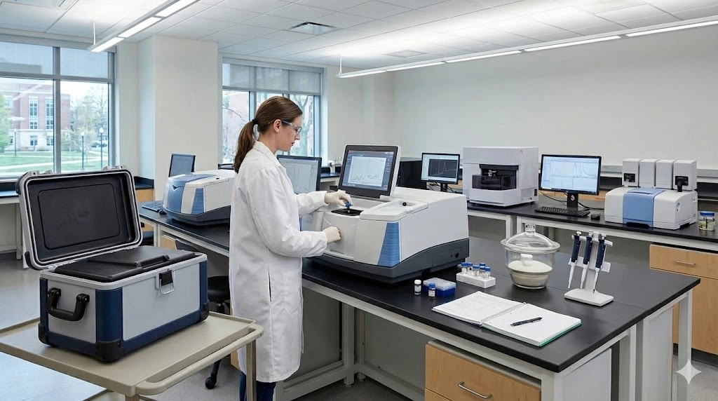 Operational flexibility is the core strength of the MOBILE-IR II. It is specifically designed for applications such as incoming goods inspection at loading docks, mobile environmental analysis, and forensic investigations at crime scenes. The heatable diamond ATR (Attenuated Total Reflectance) interface allows for the analysis of intractable solids and liquids directly on-site. For professionals in the construction or mining sectors, this model eliminates the delay of transporting samples back to a central lab, providing immediate chemical identification in harsh environments. Price Range: $20,000 – $35,000 (Estimate)