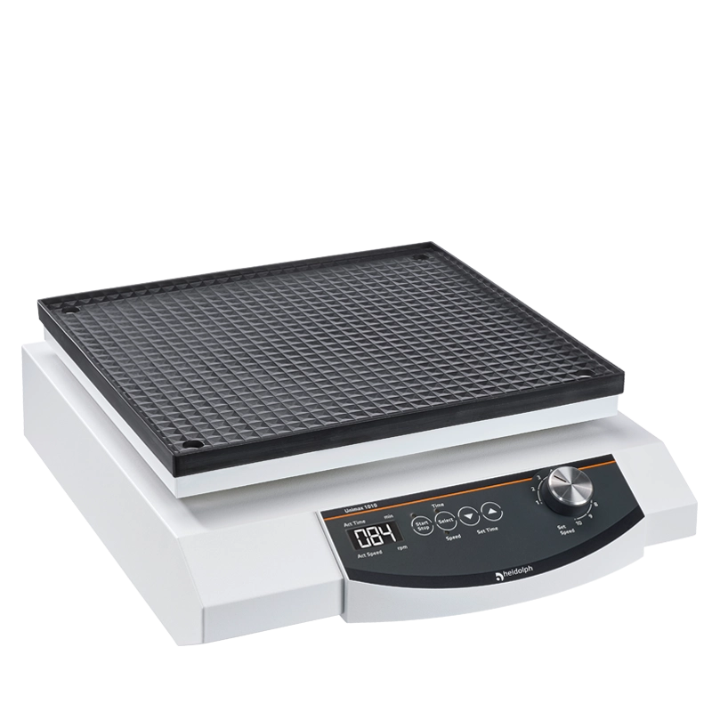 Best For: Best Overall The Heidolph Unimax 1010 remains a dominant force in the market due to its exceptional balance of performance, reliability, and modularity. While not the newest release on this list, its consistent performance record makes it the benchmark for general laboratory use. Its defining feature is the ability to integrate with the Incubator 1000 system, allowing a standard open-air shaker to transform into a temperature-controlled unit without purchasing a separate, expensive incubator shaker. Key Specs Speed Range: 30 – 500 rpm Orbit: 10 mm Max Load: 5 kg Timer: Up to 999 minutes or continuous capability Dimensions: 320 x 125 x 375 mm Performance & Applications